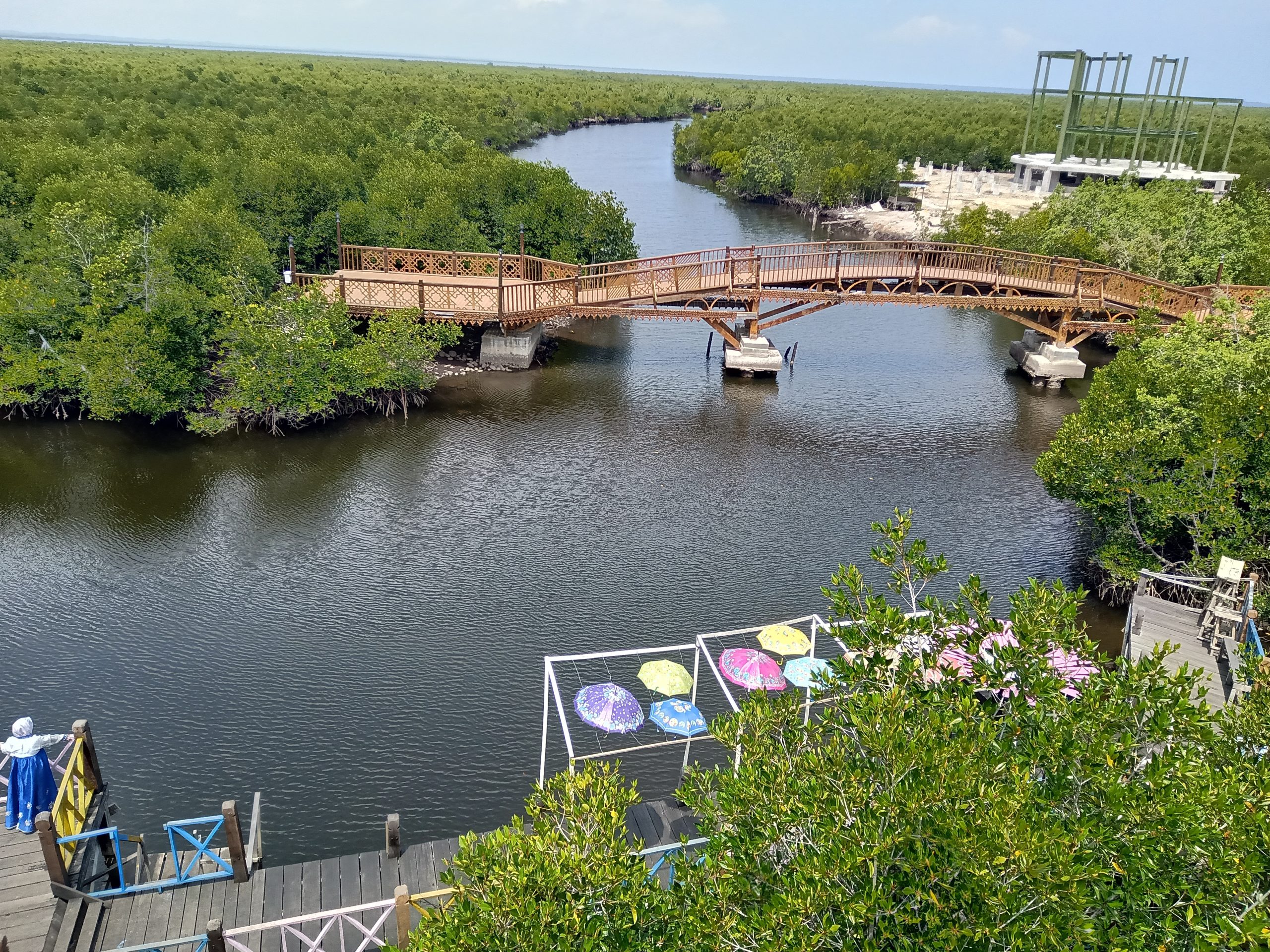 Yang membuat Hutan Mangrove ini berbeda dengan hutan mangrove lainnya adalah keindahan yang disuguhkan. Disini kamu bisa menemukan jembatan dengan panjang 300 meter. Jembatan yang dibuat dari kayu dan membentang di seluruh permukaan air rawa inilah yang menjadikan hutan mangrove semakin indah. Desain jembatan yang dibuat melengkung menjadi tempat favorit untuk berfoto.