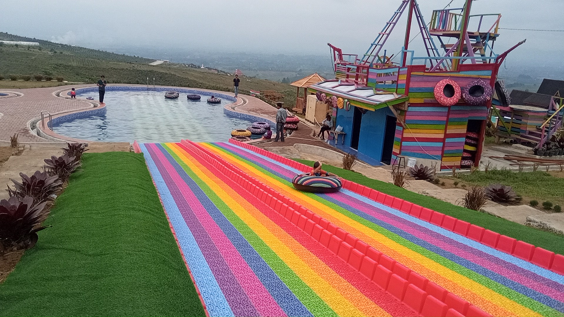 Dengan ketinggian sekitar 1.500 meter di atas laut, Puncak 2000 Siosar memang memiliki udara yang cukup sejuk. Akan tetapi, kalian tidak boleh melewatkan untuk bersenang – senang di kolam renang dan juga Mountain Slide warna – warninya. Mountain Slide ini sendiri akan langsung membawa kalian menuju ke kolam.